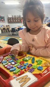 Pre-kindergarten’s are working hard on letter recognition. They are doing activities they are help them with this skill.